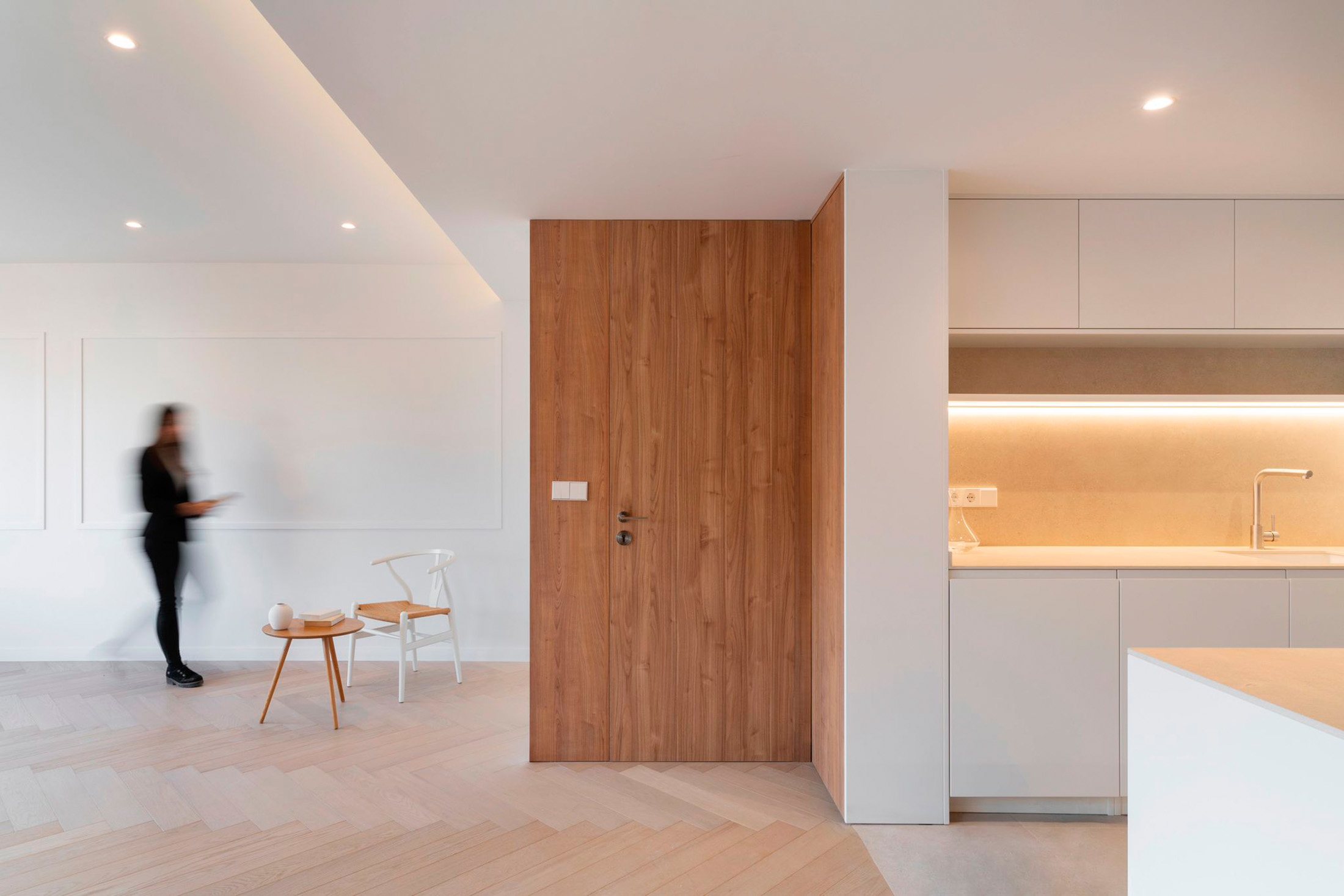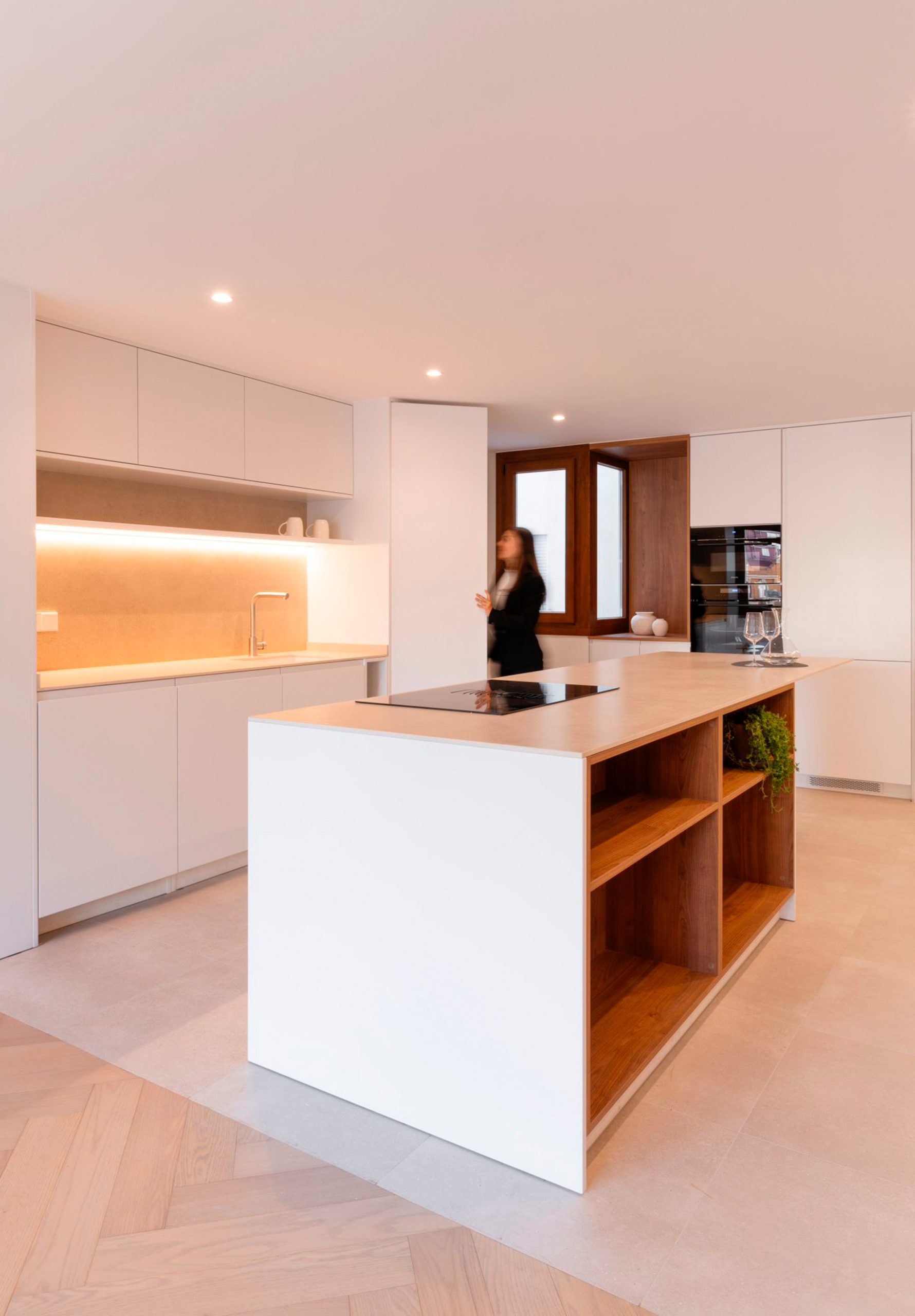 Todo el proyecto resulta ser un ejercicio de puesta en valor de este material a través de la incorporación de la luz.